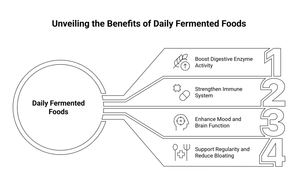 Eating fermented foods daily — such as kimchi, kefir, sauerkraut, or fermented vegan protein — can have long-term positive effects on your health.